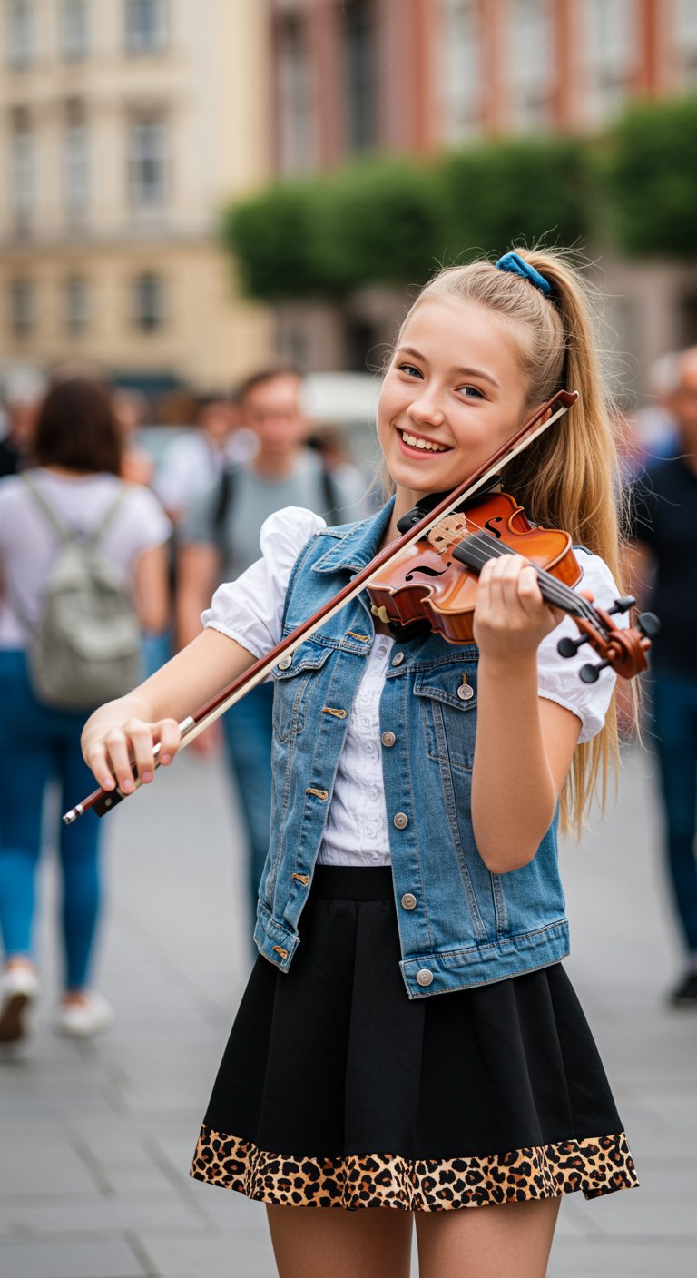 With her elegant poise and expressive playing, she transformed a crowded sidewalk into a private concert. The raw emotion in every note drew people from all directions. Strangers stopped mid-step, pulled out their phones, and watched in complete silence. Her violin didn’t just cover the song — it carried its soul.