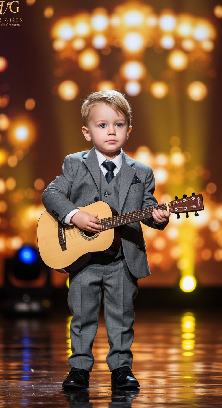 He stood there—barely tall enough to reach the microphone—wearing a little black button-up, jeans that bunched at the ankles, and cowboy boots that looked like they belonged to someone twice his size. He didn’t smile. He didn’t wave. He just stood quietly, gripping the mic with both hands like it was the only thing holding him to the earth.
