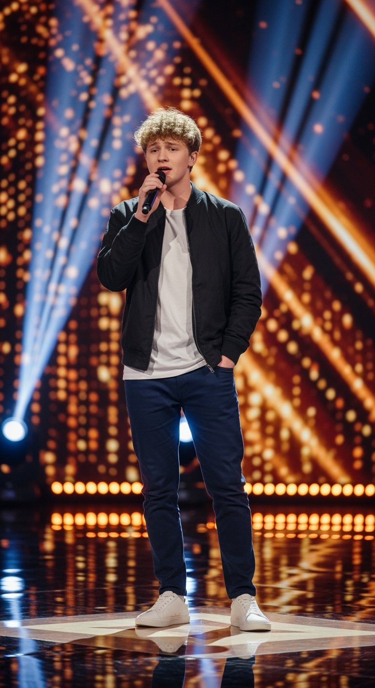A quiet stage turned into a thunderstorm of energy when a young singer stepped up to the microphone. Dressed simply in a white shirt and dark trousers, he didn’t need flashy outfits or dramatic effects—his voice carried enough power to fill every corner of the room. What followed was a performance that instantly reminded the audience of a certain rock icon known for commanding stadiums with a single note.
