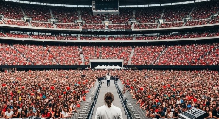 Dressed simply in a white tank top, jeans, and a single armband, the performer walked onto the stage with nothing but a microphone stand and unshakable confidence. From the very first note, the stadium came alive. It wasn’t just about the music — it was about presence, command, and the rare ability to connect with every person in the crowd.