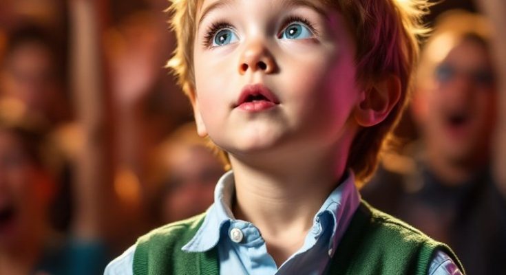A hush fell over the crowd, confusion settling in. What was this little boy doing here? Before anyone could make a sound, he began to sing.