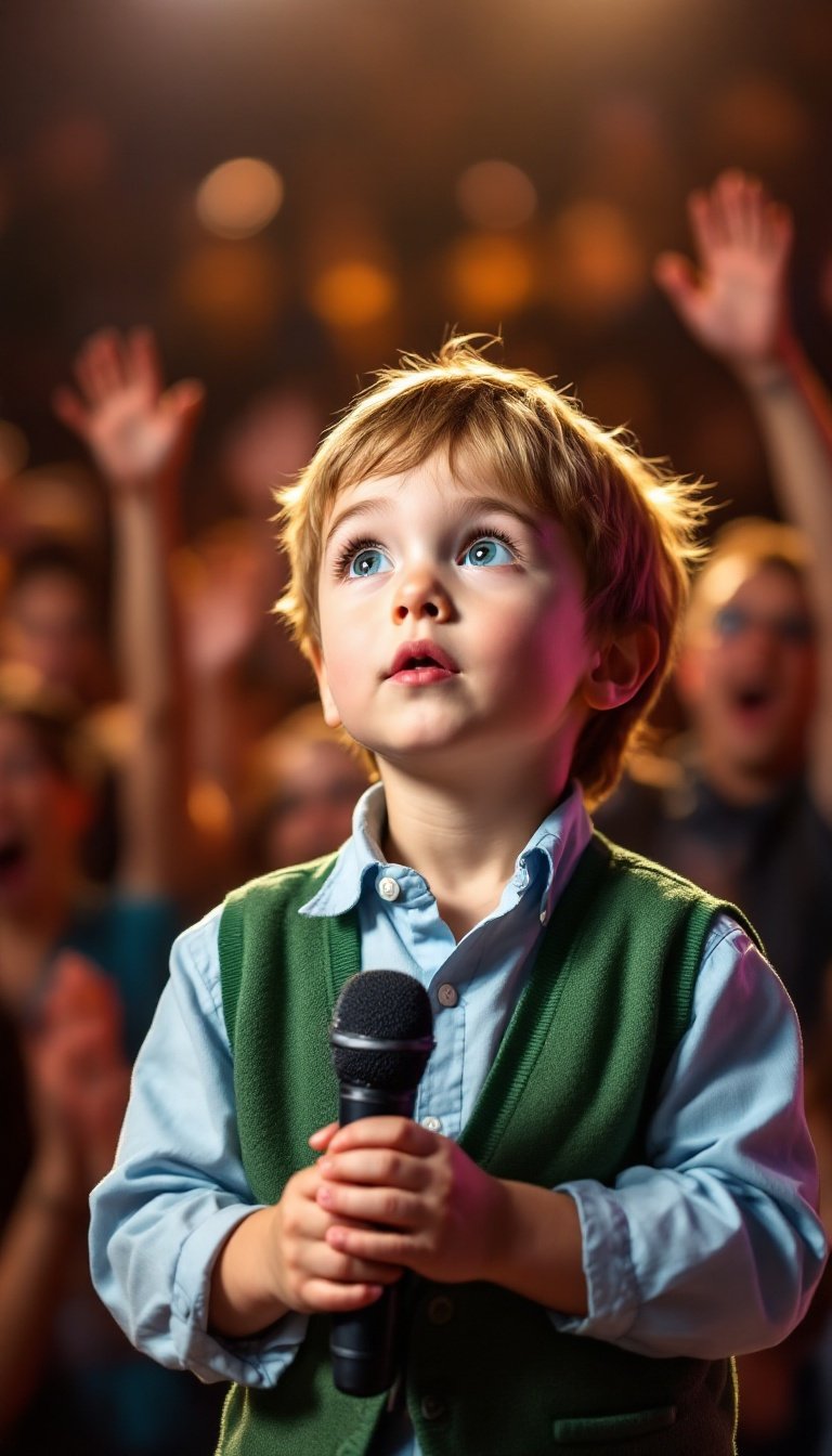 The crowd had gathered, expecting the usual performance. The stage was set, and a quiet murmur rippled through the audience as the next act was introduced. They were ready for something average, maybe a small act to pass the time. What they didn’t expect was the 1-year-old boy who waddled up to the microphone, holding it with a grip that seemed far too strong for someone so young.