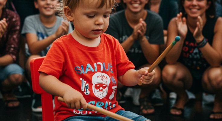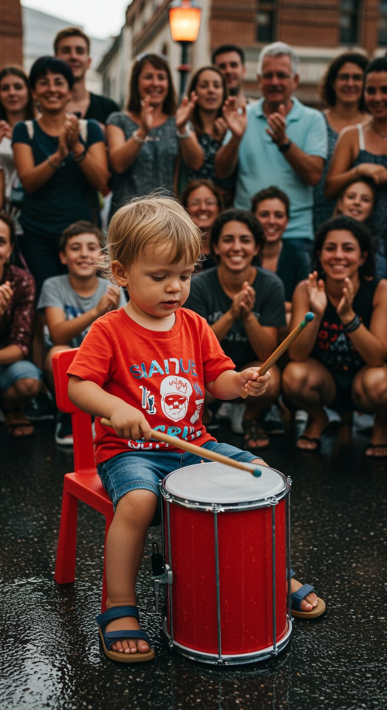 There, standing on the sidewalk, was a 1-year-old boy, barely steady on his feet. In front of him, a microphone too big for his little hands. No one paid attention at first—after all, what could a baby possibly do?