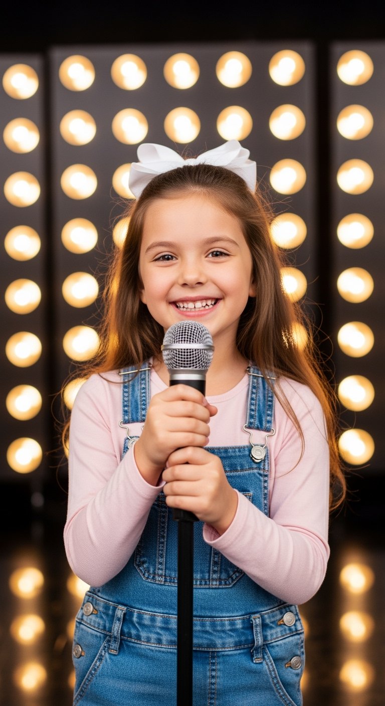She stepped onto the stage with a quiet smile, clutching the mic with both hands. Her sneakers squeaked a little as she walked, and her pigtails bounced with every step. Just a kid. Maybe seven, maybe younger. The judges leaned in, curious—but when she named her song, they couldn’t help it.