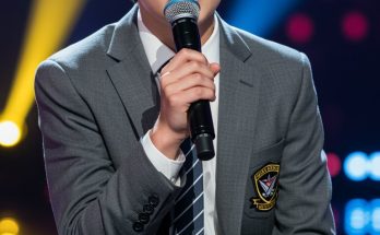 The stage lights beamed down as a young boy stepped into the spotlight, gripping the microphone with nervous excitement. His small frame seemed almost lost in the massive arena, but …